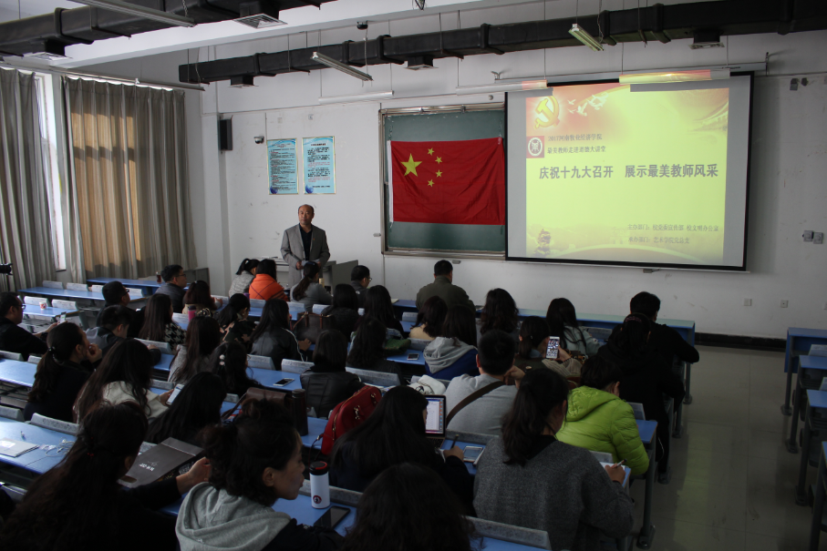 为进一步弘扬立德树人、爱岗敬业、为人师表、严谨笃学的高尚师德,营造尊师重教的浓厚氛围,发挥学校“最美教师”的示范引领作用,用身边的先进典型激励鼓舞和教育身边人,为庆祝党的十九大胜利召开营造良好的宣传舆论氛围,根据学校庆祝党的十九大召开总体宣传活动安排要求,tyc41183太阳成集团于11月2日下午,在龙子湖校区1号教学楼304举行了“庆祝十九大召开 展示最美教师风采”--“最美教师”走进“道德讲堂”活动。会议活动由院党总支书记王在钦主持。