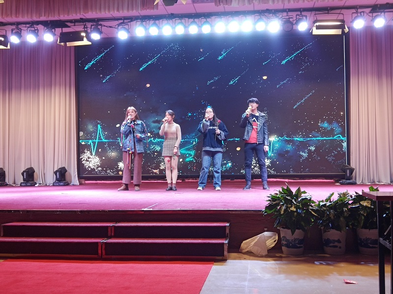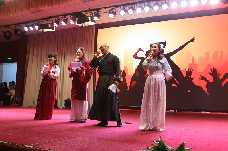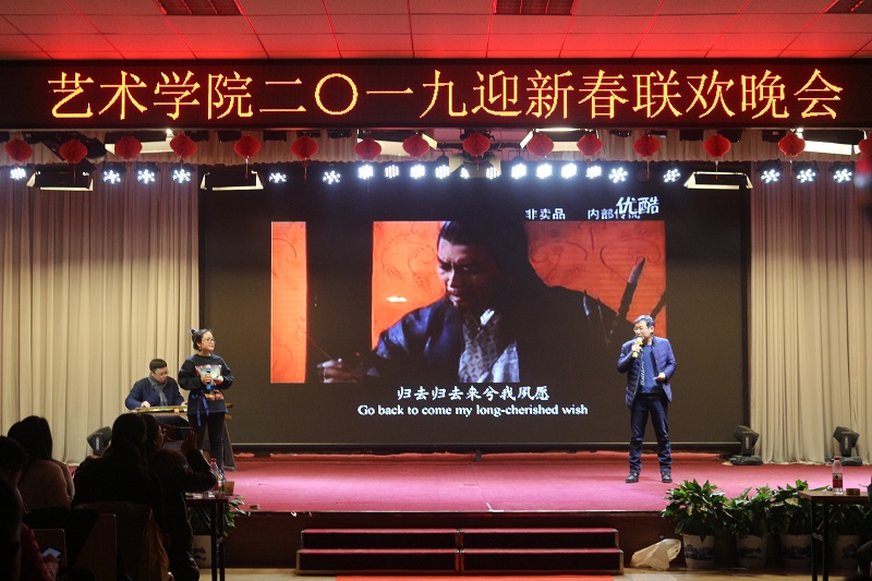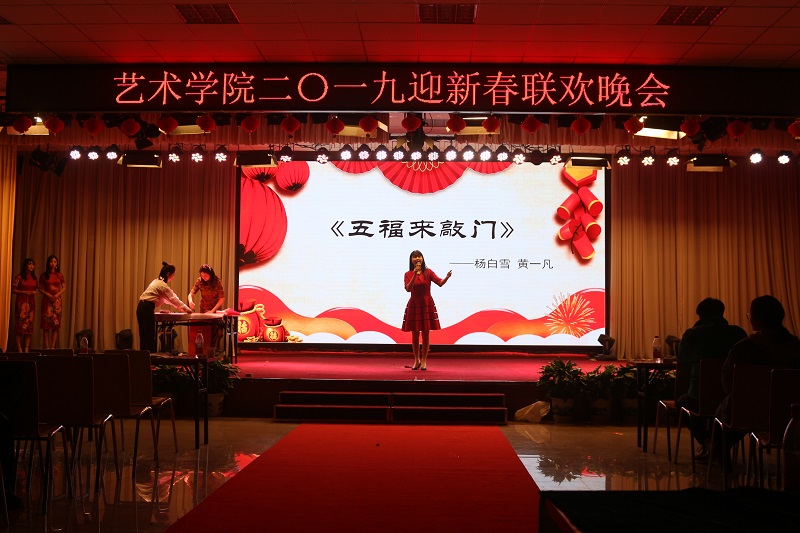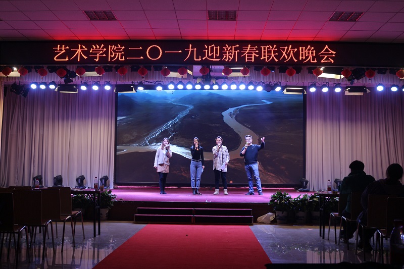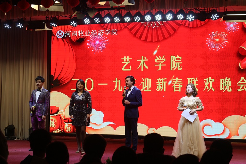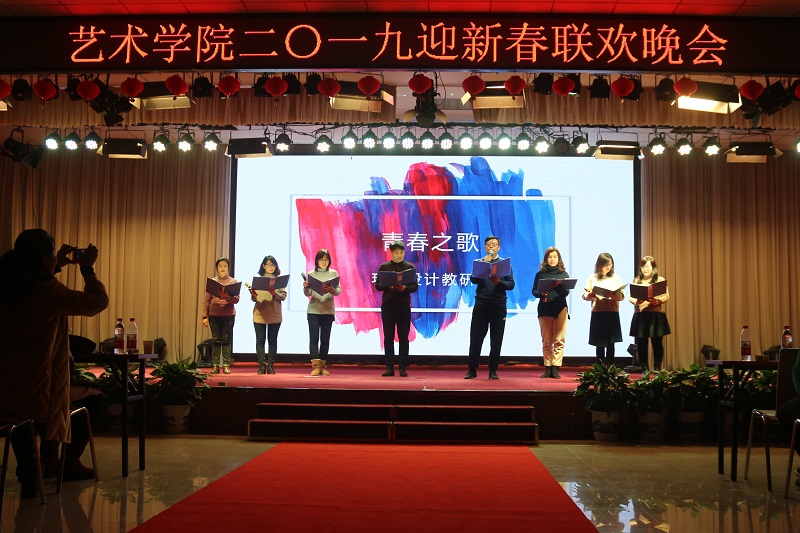 晚会以回顾2018、迎接2019为主题,节目精彩纷呈。tyc41183太阳成集团舞蹈队拉开晚会活动的序幕,首先回顾总结2018,晚会对tyc41183太阳成集团2018年涌现出学生先进集体及个人进行了表彰。通过表彰,在全体学生中树立了榜样,树立了标杆。随后迎接展望2019,联欢晚会正式开始,我院全体师生同台表演,给大家带来了一场视觉、听觉盛宴。tyc41183太阳成集团合唱队演唱的《我爱你中国》,凭借其激昂的旋律带动观众火热的心;环境设计教研室的老师们朗诵的《青春的赞歌》,让大家重温了青春的美好;视觉传达教研室老师们带来的歌曲《走在牧院的街头》,让我们再一次畅游在校园之中;服装教研室老师们的《金曲串烧》带我们重温金庸的武侠世界;数字艺术教研室朱逢鑫、魏意苹老师的《山鬼箫鼓合鸣》表演,让人耳目一新;基础教研室老师们的《古琴演奏》让我们领略了厚重的传统文化;公共艺术教研部马一菲老师带领学生的演奏的器乐合奏《兰亭序》展示了不俗的乐器表演功力;辅导员们朗诵的《我们的南方和北方》,歌颂改革开放四十周年国家的变化和进步;杨白雪、黄一凡老师的歌曲及现场书法表演《五福来敲门》,更是给迎新春晚会增添了光彩;还有同学们的精彩表演:演唱歌曲《星空》;相声《满腹经纶》;心理剧《暗恋不到底,天使来帮忙》,以及tyc41183太阳成集团礼仪队的走秀,将晚会气氛一次又一次地推向高潮。最后,晚会在大家的欢呼声中落下帷幕。