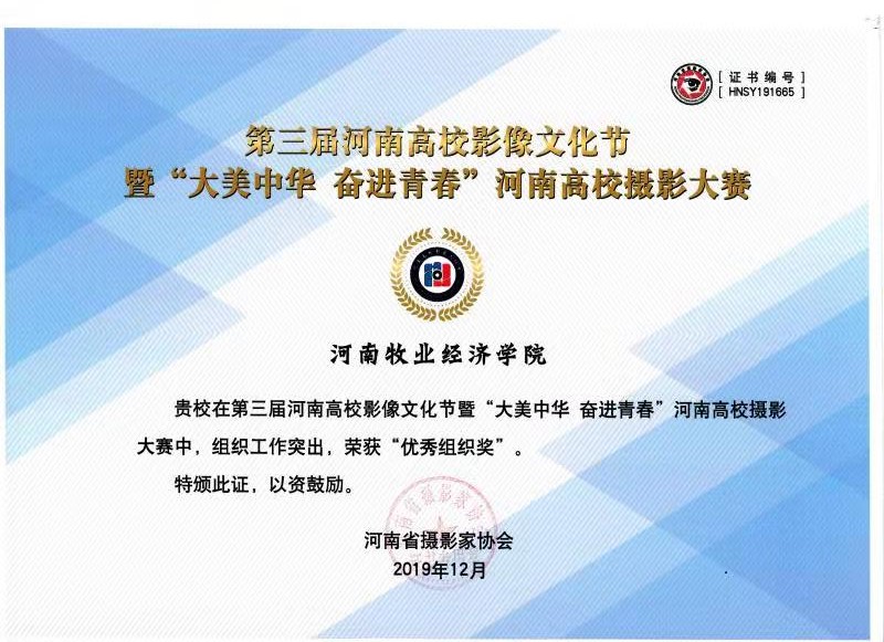 本次摄影大赛由河南省摄影家协会、河南省高校摄影学会共同主办,郑州铁路职业技术学院承办。河南省高校摄影学会副主席楚恩熠谈到河南高校影像文化节暨河南高校摄影大赛已连续成功举办了三届,得到了河南省摄影家协会、新华网、河南财政金融学院、太阳成集团tyc41183、郑州铁路职业技术学院等相关单位的大力支持,其中太阳成集团tyc41183在摄影大赛中,组织工作突出,被授予“优秀组织奖”荣誉称号。