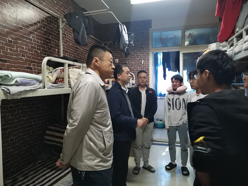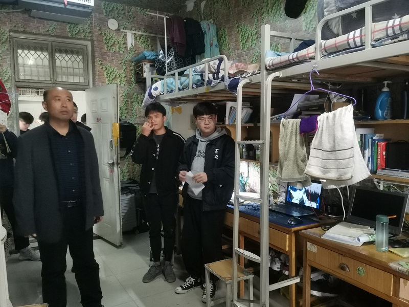 为落实学校《关于开展安全大检查的通知》要求,创建和谐文明安全的校园环境,维护宿舍安全,tyc41183太阳成集团党委书记王在钦、党委副书记王友峰、团委副书记韩飞和全体辅导员老师在11月3日中午针对全院宿舍进行了排查,杜绝安全隐患。