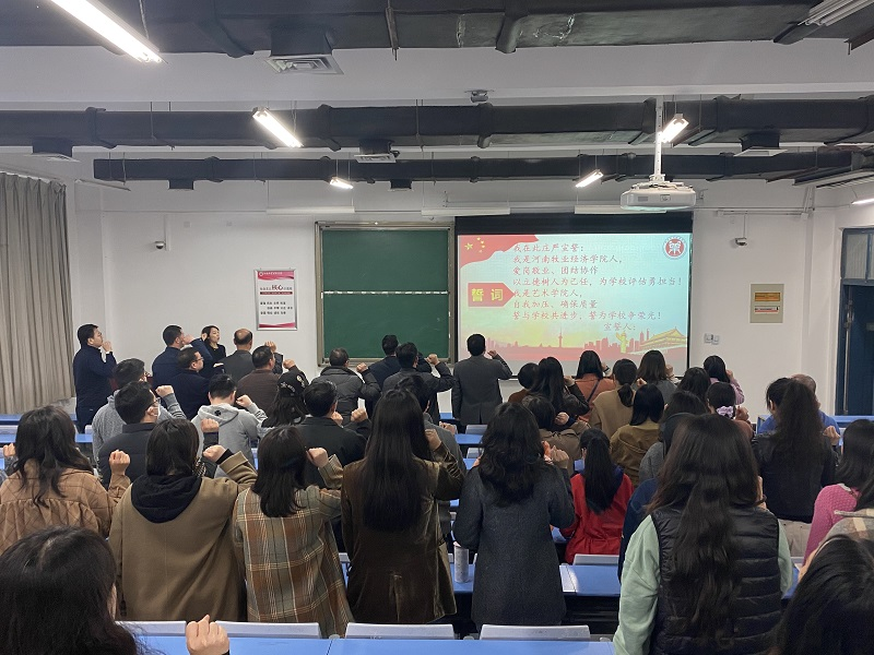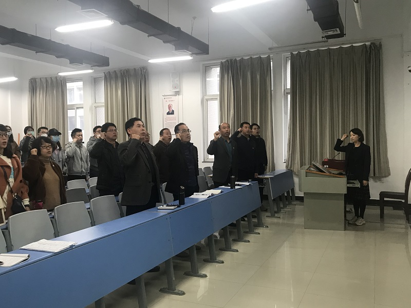 最后,学院科研副院长闫杰带领学院全体老师进行了集体宣誓。