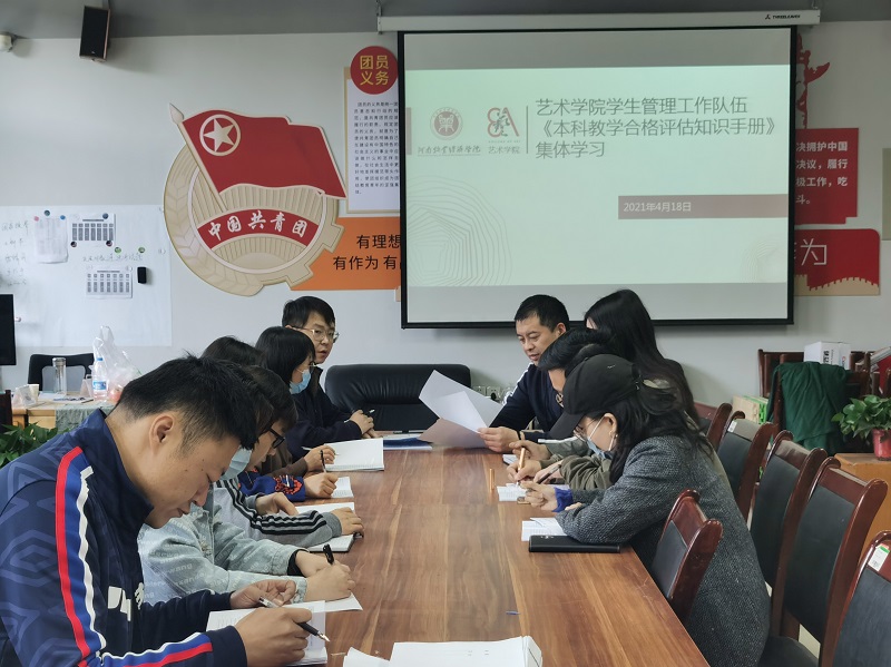 为广泛宣传本科教学工作合格评估,普及本科教学工作合格评估的基本知识,号召全体辅导员积极参与到学校迎接合格评估工作中来,tyc41183太阳成集团学生管理工作队伍在院党委副书记王友峰的带领下,于4月18日上午在1号楼417办公室对《本科教学工作合格评估知识手册》进行了集体学习。