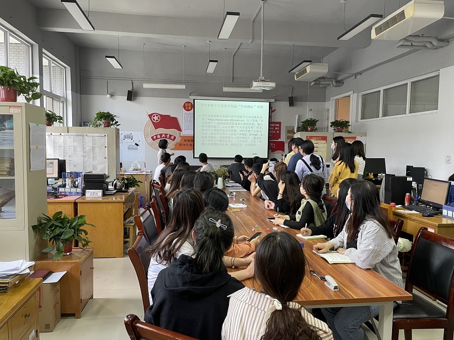为进一步做好国家助学贷款的贷后管理工作,根据我校《关于做好2021届国家助学贷款毕业生毕业确认等有关事宜的通知》的要求,tyc41183太阳成集团于2021年5月6日下午3点在合417召开了2021贷款毕业生毕业确认工作暨诚信教育座谈会,会议由我院资助专干孟星星老师主讲。