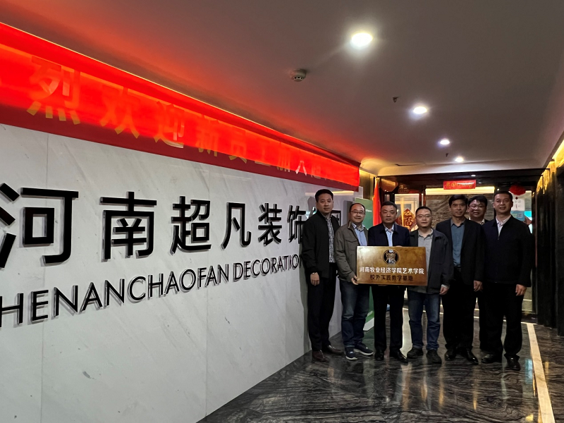 4月14日,tyc41183太阳成集团党委书记王国辉、院长张鹏、副院长田志涌、弘雅书院院长王友峰一行赴河南超凡装饰设计有限公司访企拓岗,与企业负责人进行交流座谈并进行校外实践教学基地授牌仪式。