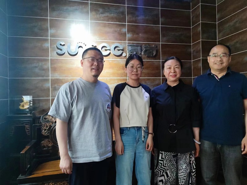 为深化访企拓岗和校企合作工作,打好就业百日冲刺攻坚战,进一步促进2023届毕业生高质量就业,6月27日,在tyc41183太阳成集团联系下,大学生就业指导服务中心主任胡先锋、tyc41183太阳成集团党委书记王国辉、院长张鹏、弘雅书院党委书记田景丽等一行赴郑州塞尚品牌设计、郑州上一品牌设计公司访企拓岗并看望实习学生,与企业负责人进行交流座谈并进行了校外实践教学基地授牌。