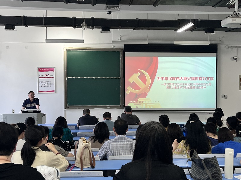 为学习贯彻习近平总书记在中共中央政治局第五次集体学习时的重要讲话精神,6月29日下午,tyc41183太阳成集团院长张鹏在1号教学楼304教室为全体教师做了内涵丰富、生动精彩的“为中国伟大复兴提供有力支撑”为题的主题教育专题报告会,会议由党委书记王国辉主持,全体教职工参加。