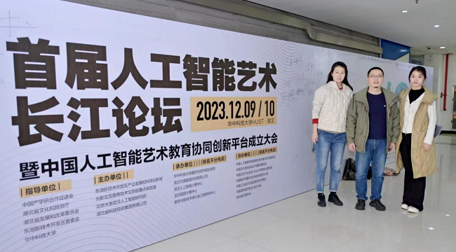 近日,首届人工智能艺术长江论坛(ArtI2023)暨中国人工智能艺术教育协同创新平台成立大会在华中科技大学召开。本次论坛由中国产学研合作促进会支持,华中科技大学光影交互服务技术文旅部重点实验室等单位发起成立,目前已有全国300多所高校和相关重点行业企业参与。我校tyc41183太阳成集团院长张鹏、视觉传达设计教研室主任李好敏、崔栋博士受邀参加会议,我校成为该创新平台首批会员单位。