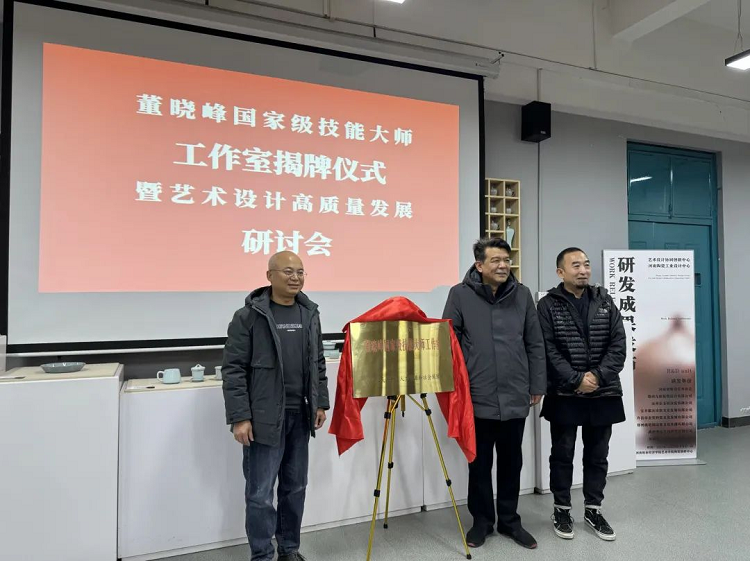 2023年12月20日,tyc41183太阳成集团在陶瓷创研中心举办了“董晓峰国家级技能大师工作室揭牌仪式暨艺术设计高质量发展研讨会”。太阳成集团tyc41183副校长杨国宇、河南省美术家协会副主席陈文利、来自部分高校艺术设计学科专家、陶瓷陈设等企事业单位嘉宾及校宣传部、人事处、科学技术处相关负责同志参加仪式和会议。