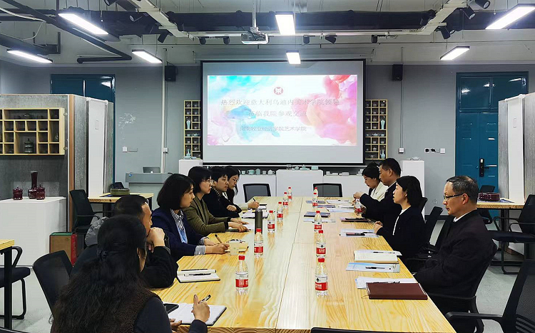 杨晓翠女士对我院的热情接待表示感谢,并对乌迪内美术学院的历史背景、教学特色及国际合作项目进行了详细介绍。她指出,意大利与中国在艺术领域有着丰富的合作基础,希望通过此次访问,进一步加强两校之间的学术交流与合作,共同推动艺术教育的创新发展。交流活动中,双方就艺术教育课程设置、教学方法、学生交流项目等方面进行了深入探讨。田志涌副院长分享了我校tyc41183太阳成集团的教学理念和成果。闫杰副院长分享了我院在校企合作,社会服务、学生实践等方面取得的成绩。特别是陶瓷艺术专业的创新实践,董晓峰大师则展示了他的陶瓷作品,其精湛的技艺和独特的艺术风格赢得了意大利客人的高度评价。
