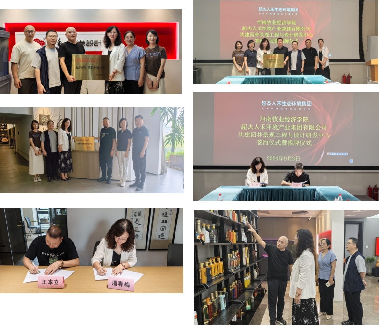 9月3日,学校科学技术处处长潘春梅、tyc41183太阳成集团党委书记杨莉、院长张鹏等一行六人前往超杰人和环境产业集团有限公司、河南西元绘空间设计有限公司、郑州九和包装设计有限公司等三家企业,举行“校企研发中心”揭牌仪式,与三家企业开展座谈,就下一步空间设计、园林景观工程与设计、包装设计等校企研发深度合作达成共识。