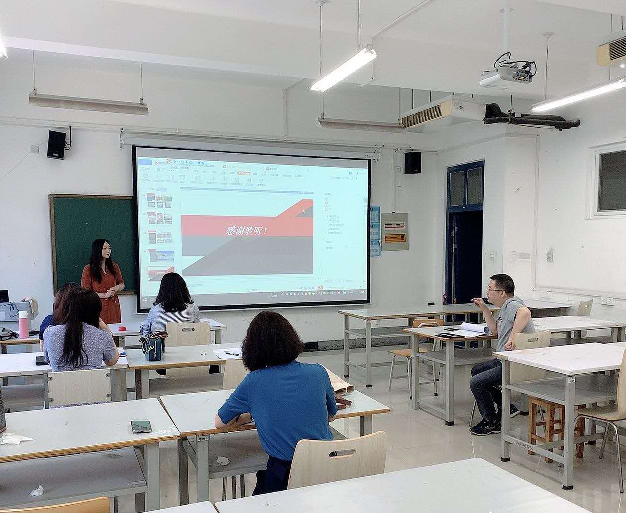 谭丛、李莉、王翔子、瓮淼、乔莉莉、乔戈、薛苗苗七位老师,围绕主讲课程内容,优化教学内容改革,挖掘课程思政元素,每位老师结合PPT进行了长达30分钟的讲述。各位教师准备充分,从教材分析、学情分析、教学重难点、教学过程设计与实施、教学评价等多个方面阐述了自己的课堂教学设计,并结合教学内容现场授课。