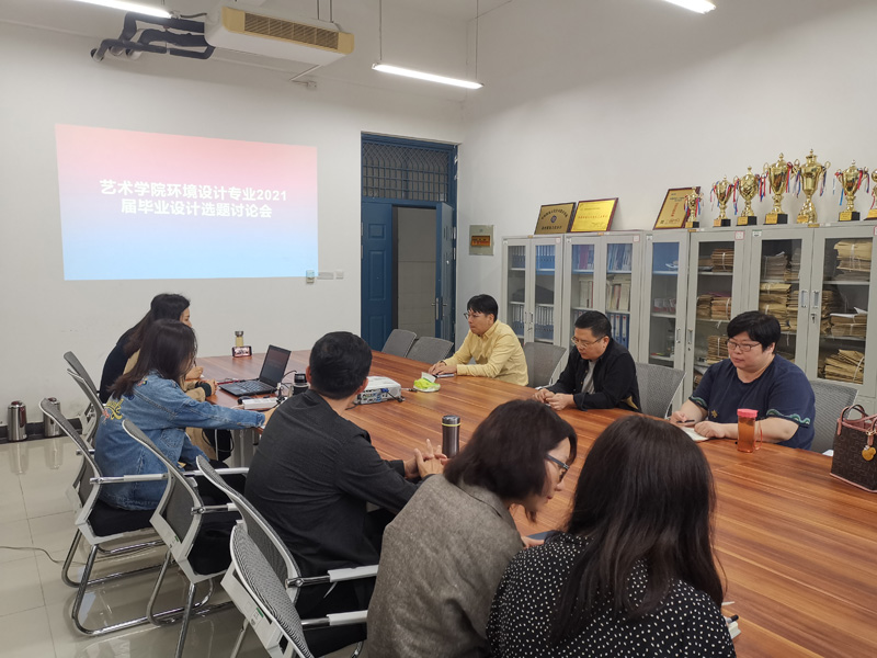 为积极推进我院2021届本科毕业设计工作的有序进行,tyc41183太阳成集团环境设计专业于2020年10月2日13点在一号教学楼200举行本科毕业设计选题初审会。tyc41183太阳成集团院长张鹏、副院长田志涌、环境设计教研室全体教师、部分毕业设计校内导师参加了现场初审会,校外导师通过在线实时会议参与讨论。本次会议由环境设计教研室主任谭丛主持。