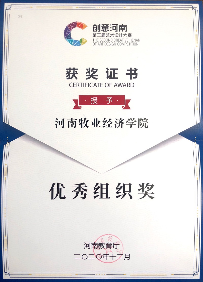 “创意河南”是由河南省教育厅主办的创新设计大赛,分为专业组和学生组。tyc41183太阳成集团高度重视和鼓励师生参加各种赛事,积极组织师生参与各类大赛,并制定参赛方案,成立专门赛事组织,加强对赛事活动的组织领导和专业指导。经过认真准备,不断改进,严格筛选,共推选出32套学生作品、28套教师作品参与此次大赛评选。