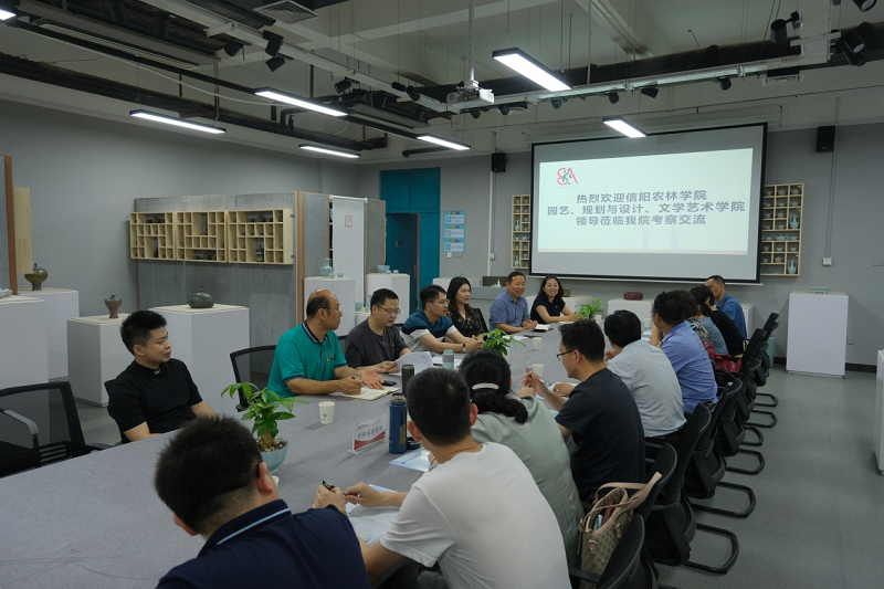 2021年6月2日,信阳农林学院园艺、规划与设计、文学艺术专业领导、老师来我院考察交流。交流座谈会在龙子湖校1号教学楼122室举行,院党委书记王在钦、院长张鹏、副院长田志涌、教学办副主任王亚昕,环境设计专业、园林专业、视觉传达专业教研室以及艺术基础教研室主任参加了座谈会。会议由院长张鹏主持。