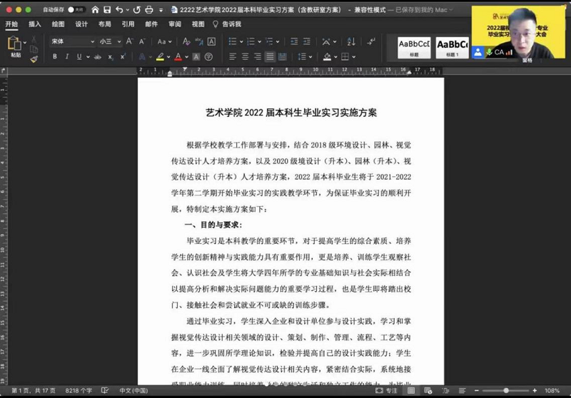 会议中,卞卡老师首先针对tyc41183太阳成集团2022届本科毕业生毕业实习实施方案、实习时间安排和实习方式、实习要求进行解读并详细部署,强调学生在教师指导下,根据实习大纲要求进行实习并及时向指导老师汇报。指导教师通过多种平台方式不定期对实习学生进行检查,强调了实习纪律。张莹老师系统地从为什么要实习、如何实习、实习效果三个维度完整地介绍了实习工作,包括实习的必要性、目的和意义,实习基本情况,实习注意事项等,让学生条理清晰地全面了解实习,并进一步明确了自己要做的准备工作。