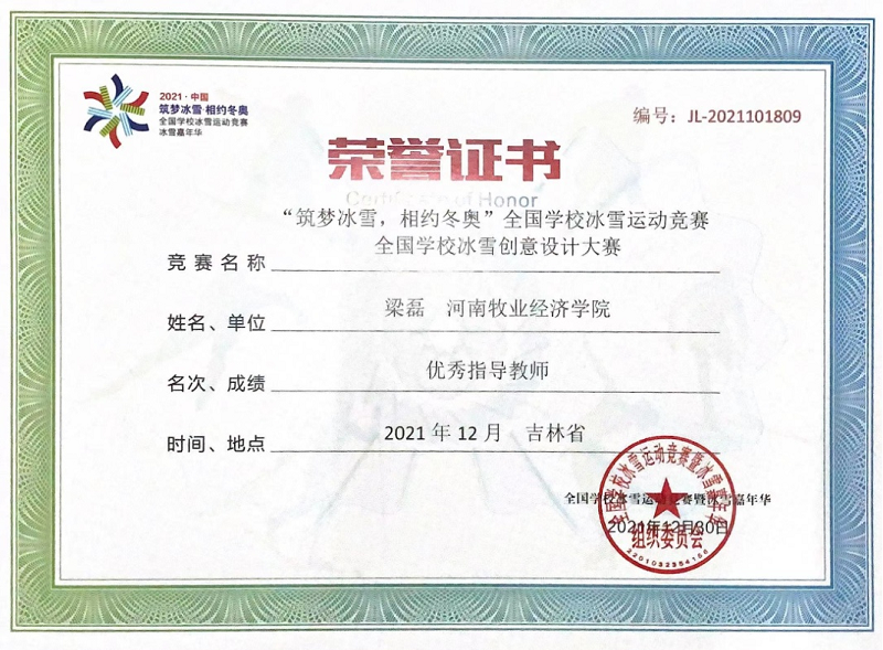 近日,由教育部、国家体育总局、北京冬奥组委和吉林省人民政府主办的第三届全国学校冰雪创意设计大赛圆满落下帷幕。我校tyc41183太阳成集团积极参与,经过专家评委会的初审、复审和终审,参赛作品喜获佳绩,荣获一等奖1项、三等奖1项,梁磊获“优秀指导教师”称号。