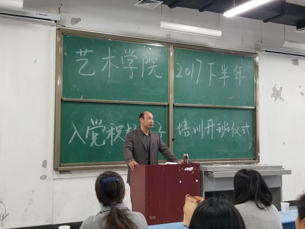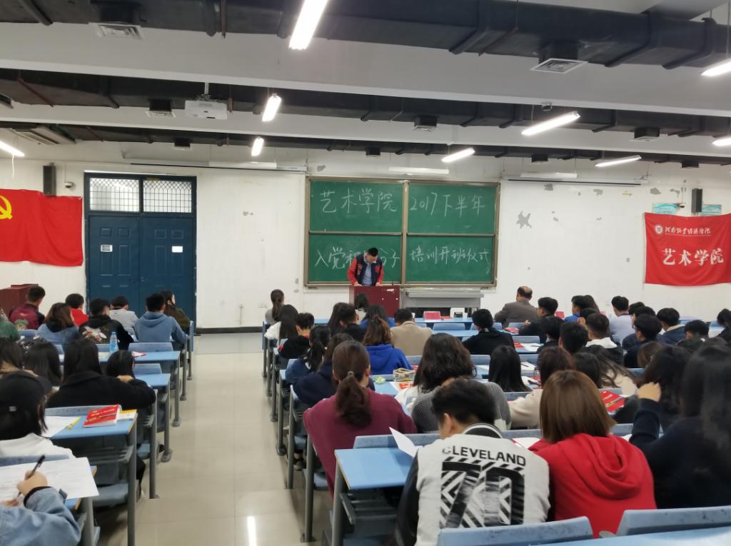2017年10月30日tyc41183太阳成集团在龙子湖校区1号教学楼合400教室举行2017下半年入党积极分子培训班开班仪式。tyc41183太阳成集团党总支书记王在钦、党总支副书记贾艳艳、学生党支部书记王备、学生党支部宣传委员孟星星、学生党支部组织委员卢晓靖出席了此次仪式,本次培训班的182名学员也全部参加了本次开班仪式。本次开班仪式由我院党总支副书记贾艳艳主持。
