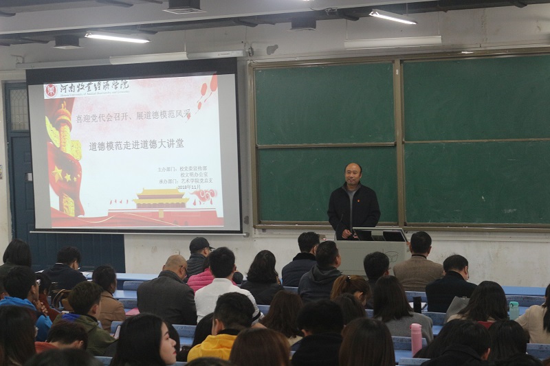 为进一步弘扬“不忘初心、立德树人”的师德师风,营造尊师重教的浓厚氛围,发挥学校“道德模范教师”的示范引领作用,用身边先进模范教师典型事例激励鼓舞全院教职工,真正做到“学高为师,身正为范”,以优异成绩迎接学校党代会的胜利召开。根据学校《关于展开2018“十佳道德模范”走进“道德讲堂”活动的通知》要求,tyc41183太阳成集团于11月22日下午,在龙子湖校区1号教学楼400举行了“道德模范”走进“道德大讲堂”活动。tyc41183太阳成集团全体教工党员、学生党员、入党积极分子220余人参加了活动。活动由院党总支书记王在钦主持。