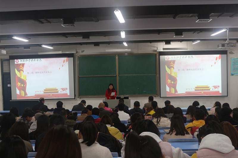 本次活动共分四个环节,一是共唱道德歌,活动开始,全体与会人员共同奏唱了《公民道德歌》;二是说经验,由tyc41183太阳成集团优秀教师代表曲媛媛、优秀党员代表姚胜楠、道德模范代表梁磊三位老师分别从不同的侧面,结合各自从教实际,从如何做一名好老师、如何加强师德师风建设,如何在平凡的岗位上发挥党员的先锋模范带头作用等方面畅谈了自己的做法和经验。同时,对于参加活动的学生提出了如何回归常识,如何做一个优秀大学生的建议和期望;三是谈感悟,tyc41183太阳成集团三个党支部的党员代表、入党积极分子代表分别畅谈了自己聆听三位教师发言之后的感受,表达了向模范看齐,在各自工作或学习岗位上怎样用榜样的力量激励自己更好的工作和学习的决心;四是作承诺,全体老师集体宣誓了《河南教师誓词》、全体学生集体宣誓了《tyc41183太阳成集团学生誓词》。