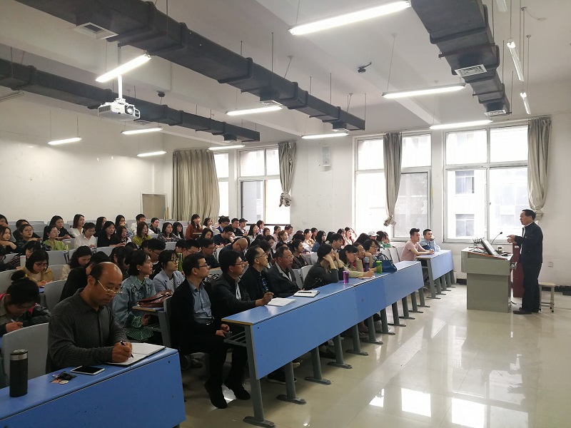 4月18日下午,tyc41183太阳成集团邀请学校党委宣传部部长王凌彬教授为师生作“学习两会精神”专题辅导报告。报告在1号教学楼304教室举行,tyc41183太阳成集团全体教师、学生党员以及党员发展对象聆听了本次报告。报告会由tyc41183太阳成集团党总支书记王在钦主持。