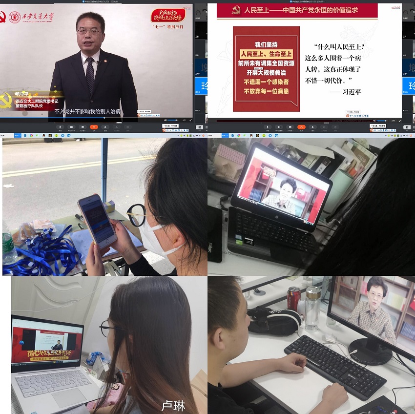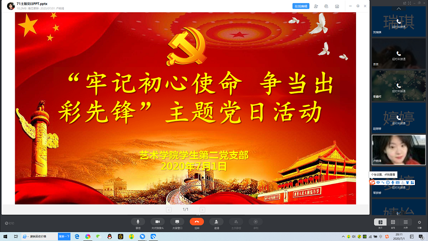 在庆祝中国共产党成立99周年之际,为继承发扬优良传统,加强党员党性修养,进一步增强党员守初心、担使命、勇作为的责任感和使命感,根据学校党委组织部和tyc41183太阳成集团党委要求,tyc41183太阳成集团学生第二党支部全体党员,在支部书记卢晓靖、组织委员王霜、宣传委员孟星星三位老师带领下,于7月1日以钉钉视频会议的方式开展了“牢记初心使命、争当出彩先锋”主题党日活动。