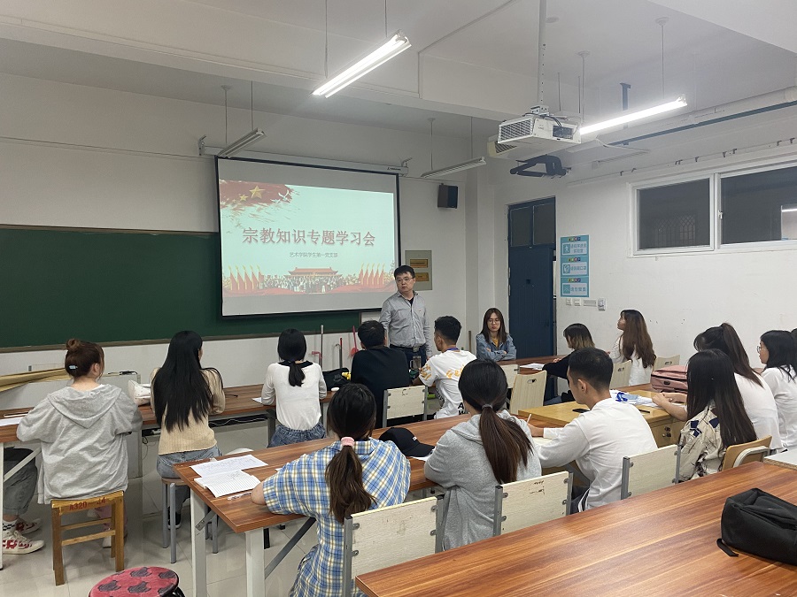 为进一步贯彻落实习近平总书记关于宗教工作的重要论述,引导广大青年学生树立科学的马克思主义宗教观,理性对待宗教,9月29日,tyc41183太阳成集团学生第一党支部举办了宗教知识专题党课,组织全体党员学习马克思列宁主义宗教观及我国宗教政策、法律法规。党支部书记韩飞老师、组织委员云畅老师以及支部全体学生党员参加了此次会议。党课由韩飞老师主讲。