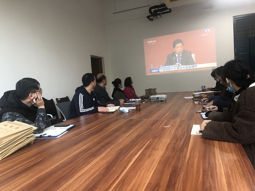 根据学校《关于组织收听收看党的十九届五中全会新闻发布会的通知》要求, 10月30日上午10时,tyc41183太阳成集团全体学工队伍于院会议室组织收看党的十九届五中全会新闻发布会,院党委书记王在钦,院党委副书记王友峰,院党政办主任魏杨杨,院科研办主任邢淑霞共同参与观看学习。