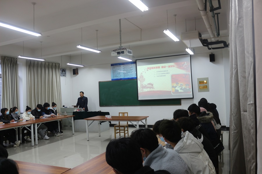 为进一步贯彻落实党的十九届五中全会精神,12月10日下午,校党委副书记李波在龙子湖校区2号教学楼C324教室以《贯彻强军思想,建设一流军队》为题讲授思政课,tyc41183太阳成集团党委副书记王友峰、院团委副书记韩飞,50余名学生党员和学生干部一起聆听了思政课。