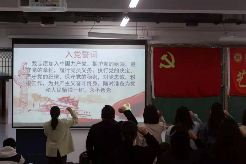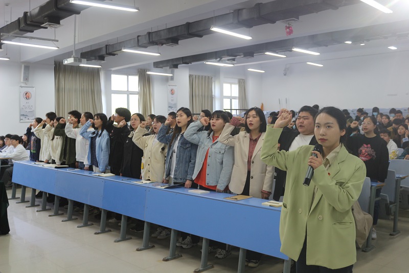 2021年4月17日,tyc41183太阳成集团在龙子湖校区1号楼300教室隆重举行tyc41183太阳成集团新党员宣誓仪式。学院党委书记王在钦、党委副书记王友峰、学生第一党支部书记韩飞、组织委员屈普、宣传委员王梦如;学生第二党支部书记卢晓靖、组织委员王霜、宣传委员孟星星及辅导员李绅出席本次活动。同时观摩本次宣誓仪式的还有全院所有的学生正式党员、预备党员、本期的58名发展对象和本期150名积极分子,本次仪式由韩飞老师主持。