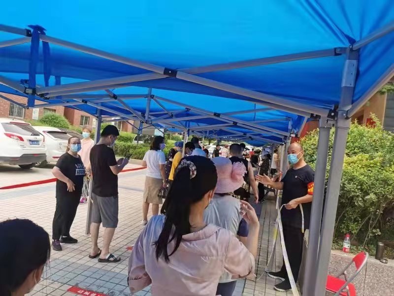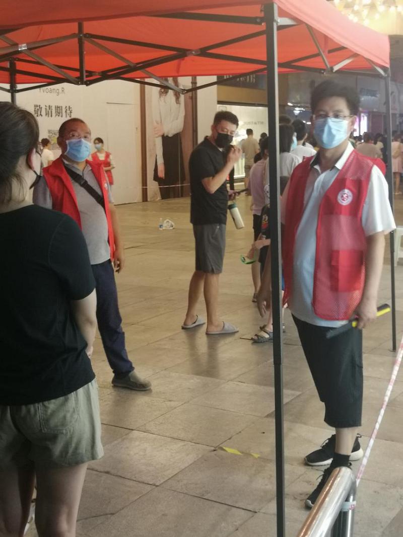 近日,郑州市多个区域相继出现新冠肺炎疫情本土病例,疫情防控形势异常严峻。tyc41183太阳成集团师生党积极响应学校党委、学院党委号召,积极投身疫情防控志愿者服务。tyc41183太阳成集团委书记王在钦主动向郑州市中原区三官庙街道湖光苑社区报名参加社区核酸检测志愿者,从2021年8月5日下午2:30到6日凌晨2:00,王在钦在核酸检测现场连续工作11个半小时,累得两条腿已不听使唤;6日下午又继续参加核酸检测的志愿者活动。