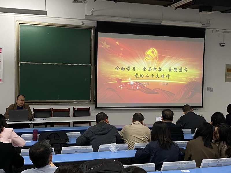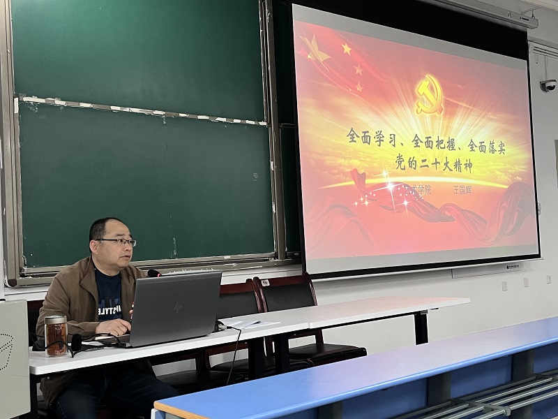 为贯彻落实好党的二十大重大决策部署,4月13日下午,tyc41183太阳成集团党委书记王国辉在1号楼304为学院全体教职工作题为“全面学习、全面把握、全面落实党的二十大精神”专题辅导讲座,学院全体教职工参加。