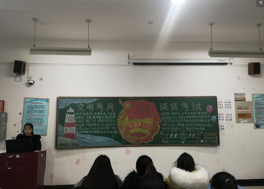 2018年12月27日下午,tyc41183太阳成集团在龙子湖校区二号教学楼举行了以“文明考风,诚信考试”为主题的团课班会,本次团课,由大一全体班级参加!