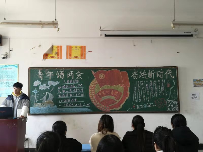 2019年3月7日下午,tyc41183太阳成集团各团支部,在龙子湖校区二号教学楼,举行了以“青年话两会,奋进新时代”为主题的团课。