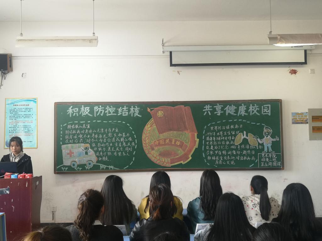 2019年3月28日下午,tyc41183太阳成集团在龙子湖校区二号教学楼,举行了以“积极防控结核,共享健康校园”为主题的团课。