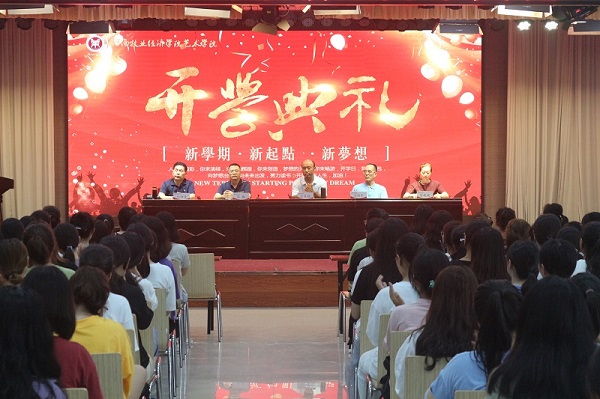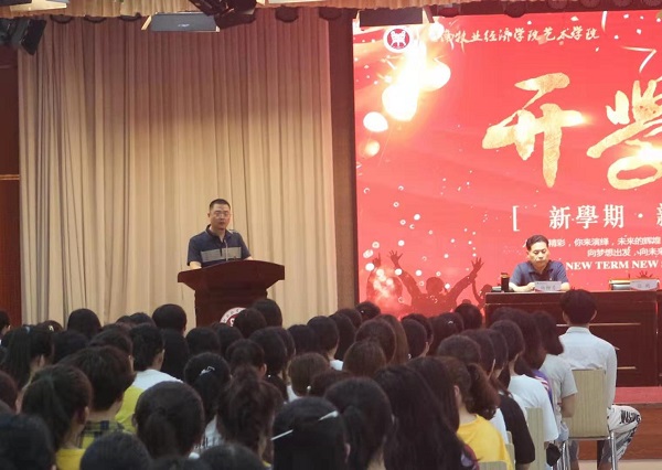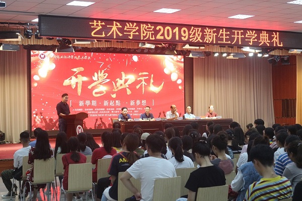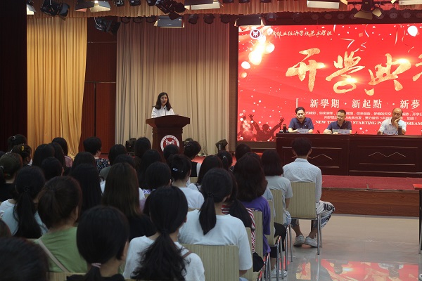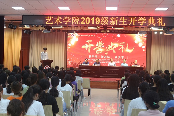 2019年9月10日中午,tyc41183太阳成集团在龙子湖校区大学生活动中心隆重举行2019级新生开学典礼。出席开学典礼的有学院党委书记王在钦,院长张鹏,正处级组织员许国平、杨柳青,副书记贾艳艳及tyc41183太阳成集团各教研室教师代表和辅导员老师,典礼由副书记贾艳艳主持。