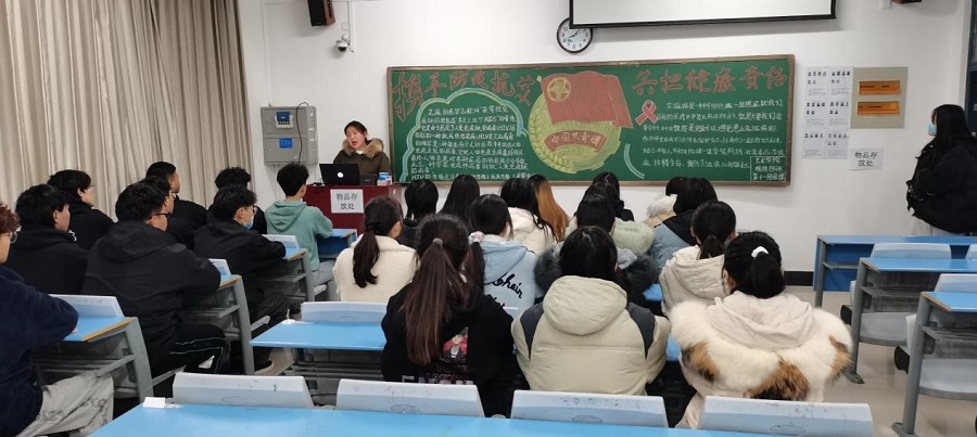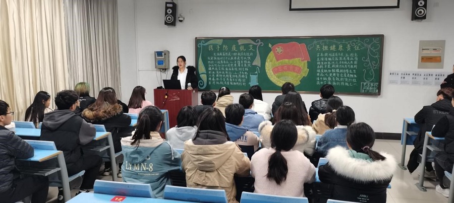 2020年12月04日晚上19:30—20:30,tyc41183太阳成集团在龙子湖校区二号教学楼举行了以“携手防疫抗艾 共担健康责任”为主题的团课班会,本次团课,由大一全体班级参加。