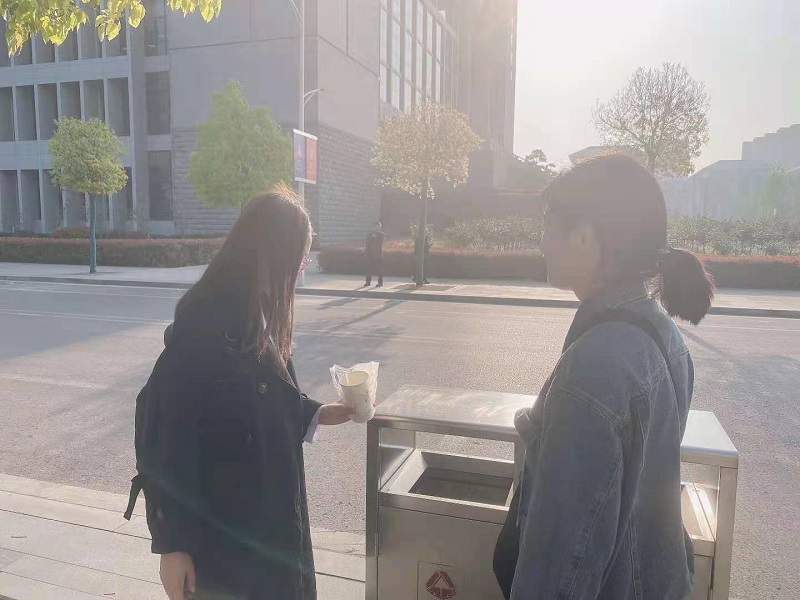为创建绿色健康、文明和谐的校园,tyc41183太阳成集团自本学期以来特组建志愿文明督察小组,每天早晨7:35-7:50在1号教学楼、2号教学楼和生工楼门口负责抽查带早饭进入教学楼。严格把关,耐心劝导,提醒同学们早餐要吃好,养成早睡早起的好习惯,自觉抵制“早餐进教室”的不文明行为。