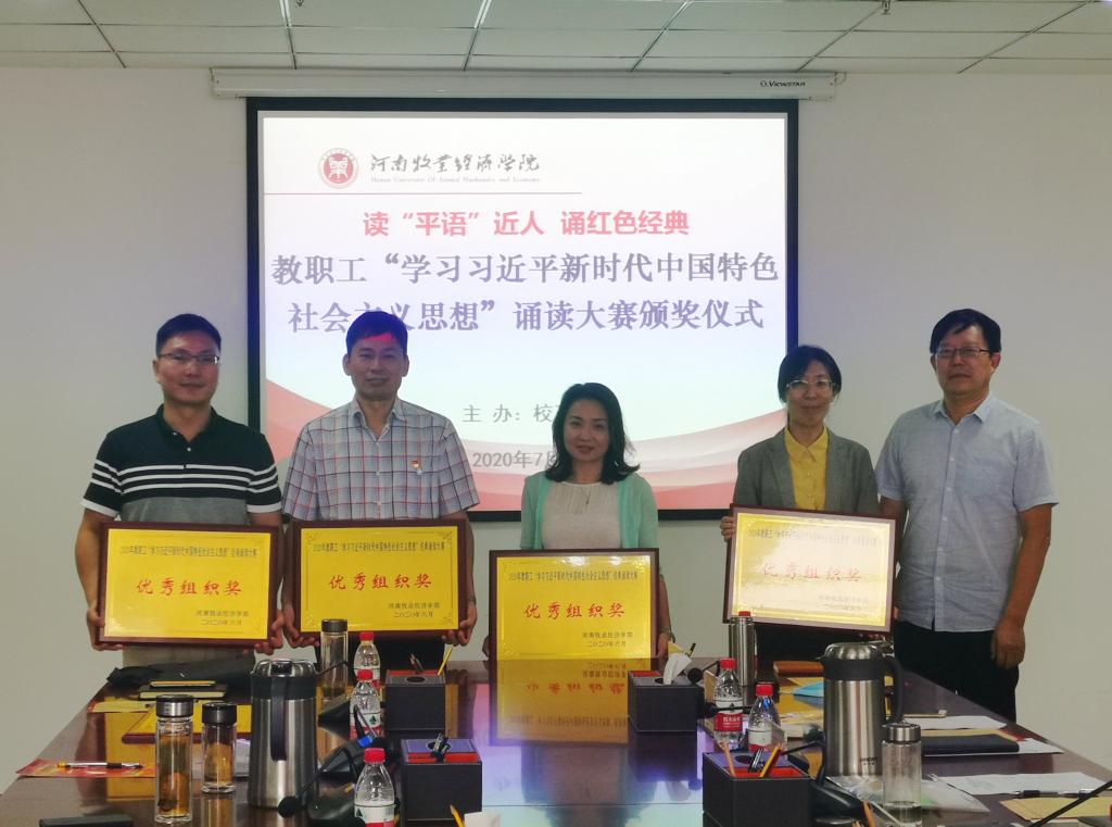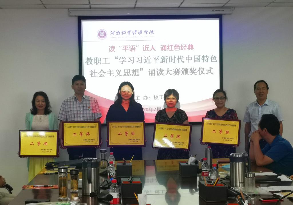 根据中共河南省委宣传部、河南省总工会《关于开展河南省职工“学习习近平新时代中国特色社会主义思想”经典诵读活动的通知》(豫工文〔2020〕13 号)文件精神,tyc41183太阳成集团分工会在全体教职工中广泛宣传,组织大家积极参与,共向校工会推荐报送了9件诵读视频作品。经过专家组集中观看、认真评审,tyc41183太阳成集团分工会谭寅峰老师的《祖国啊,我亲爱的祖国》荣获二等奖,陈胜蓝老师的《黄河畅想》、韩飞、王霜老师合作的《念奴娇·追思焦裕禄》以及园林教研室集体创作的《人不负青山青山定不负人》等荣获三等奖。tyc41183太阳成集团分工会荣获优秀组织奖。