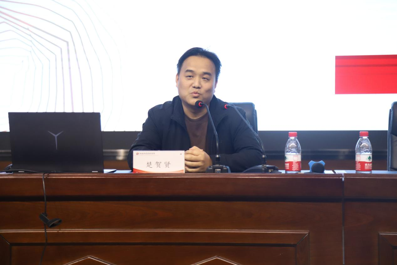 刘显代表学院师生对心系母校重返校园的优秀校友楚贺贤表示了热烈的欢迎。向同学们介绍了楚贺贤的基本情况,并简要介绍了学院近年来在学科建设、人才培养、社会服务等方面取得的成就,同时感谢楚贺贤始终心系母校和学院,在人才培养、困难生资助帮扶等方面给予的支持,高度评价了他对学院的反哺之情。楚贺贤发表相关主题演讲,他深情回顾了在母校求学的难忘时光,感恩老师们的悉心栽培。在经验分享环节,楚贺贤结合自身从职场新人到创业者的成长历程,从专业学习、职业规划、资源整合等方面为学弟学妹们提供了宝贵建议,同时发表他对人生的感悟,以亲身经历引导同学们树立正确的就业观和择业观,并且邀请同学上台互动,在座的同学们积极参与。此前,楚贺贤以个人名义为我院3名困难学生分别资助了1000元现金。